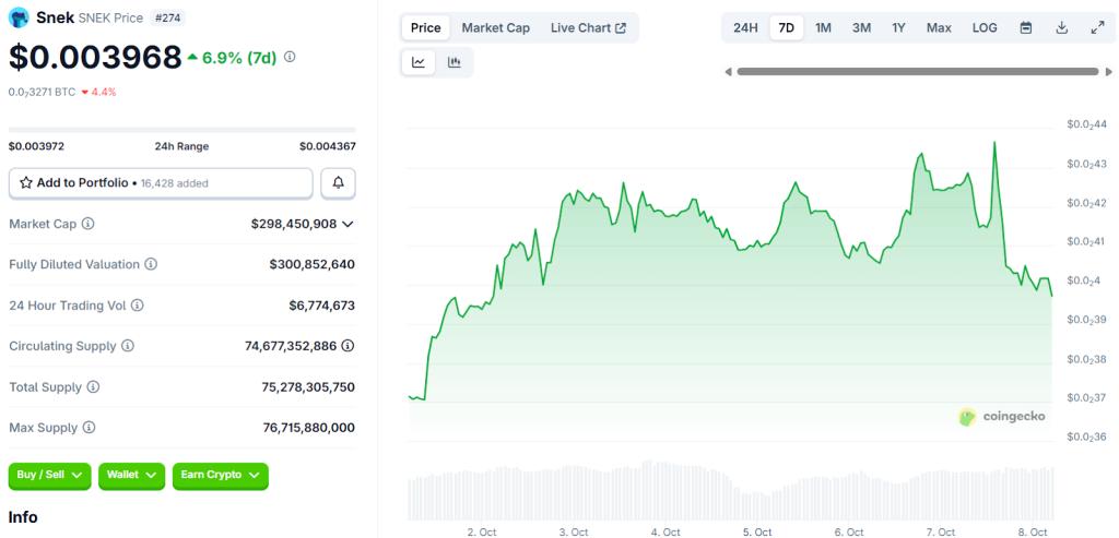 如果 SNEK 能够突破 0.00437 美元的阻力位,分析师预计将向 0.01 美元迈进。这个数字听起来可能不大,但随着社区发展和新币上线传闻的出现,持续的上涨很容易使其市值随着时间的推移达到数十亿美元。如果 SNEK 从当前水平上涨 40 倍,其市值将接近 130 亿美元,足以将 450 美元的投资转化为约 18,000 美元的收益。