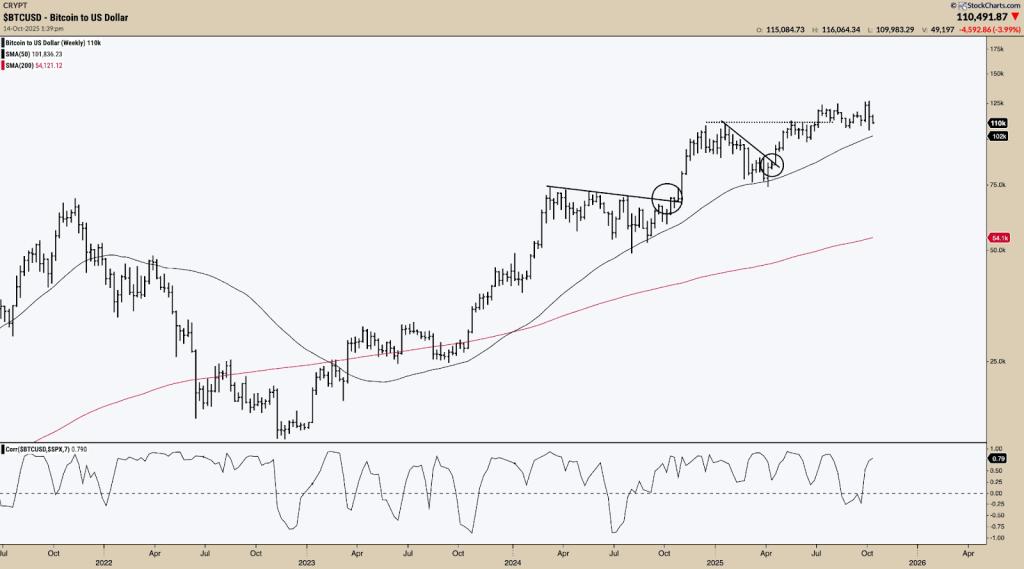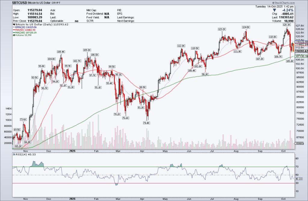 这一时机与历史规律相符,主要周期在达到峰值之前都会经历震荡。比特币近期从10月6日12.63万美元的高点跌至11.1万美元,这意味着12%的回调,在达到令人欣喜的峰值之前,弱势的投资者被淘汰出局。这一周期既预示着风险,也预示着潜在的上涨空间。