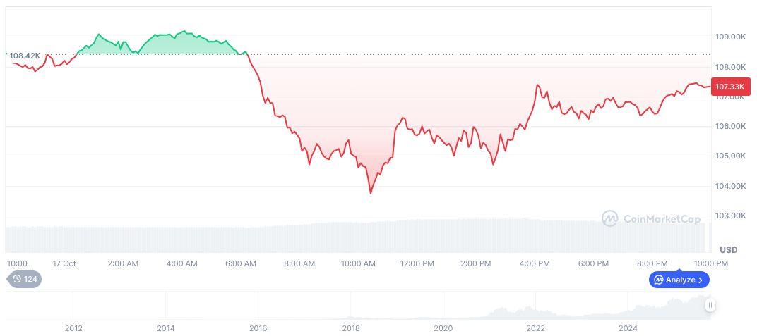 根据CoinMarketCap2025年10月18日,比特币(BTC)价格为106,975.03美元,市值达2.132万亿美元,市场占有率为58.86%。最后一天交易量下降49.25%,至571.7亿美元。24小时内价格上涨1.71%,但30天和90天内价格均有所下跌,表明市场持续波动。