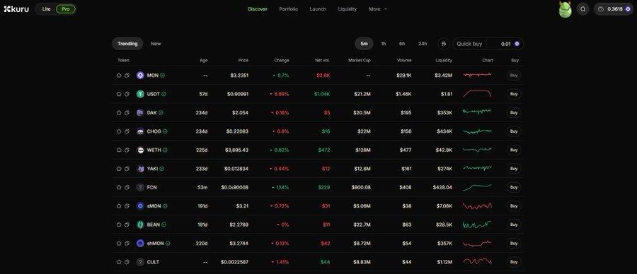 Kuru 是 Monad 上完全链上订单簿交易所,旨在成为交易中心。得益于 Monad EVM 的高扩展性,Kuru 得以实现链上订单簿交易。Kuru 不仅使用 CLOB(集中限价订单簿),还结合了 AMM 流动性,以确保即使在某些市场流动性较低时也能顺畅交易。