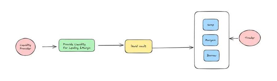 在 Likwid 中,流动性池本身既充当市场又充当借贷平台,作为对手方。流动性提供者不仅像在 AMM DEX 中那样提供流动性并赚取费用,还同时充当贷款人和衍生品流动性提供者。