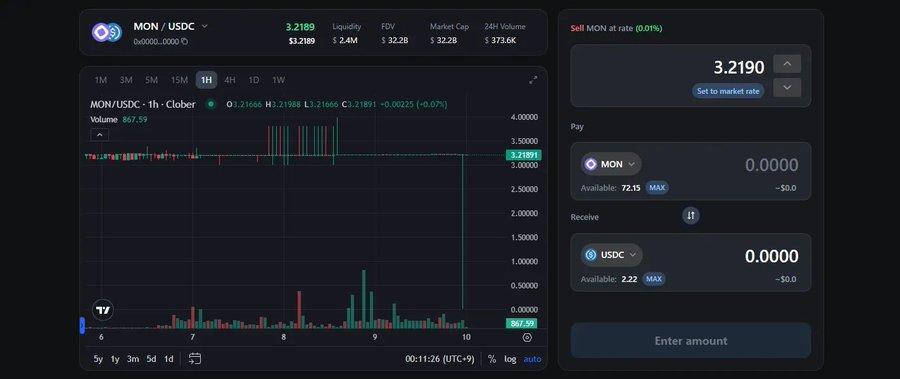 通过这些创新,Clober 在链上限制内实现了 AMM 级别的效率和中心化交易所(CEX)级别的精确度。利用 Monad 的可扩展性,它构建了一个能够匹敌中心化交易所性能的先进结构。用户可以通过订单簿交易代币、下限价单,并直接在 Clober 平台上提供流动性。