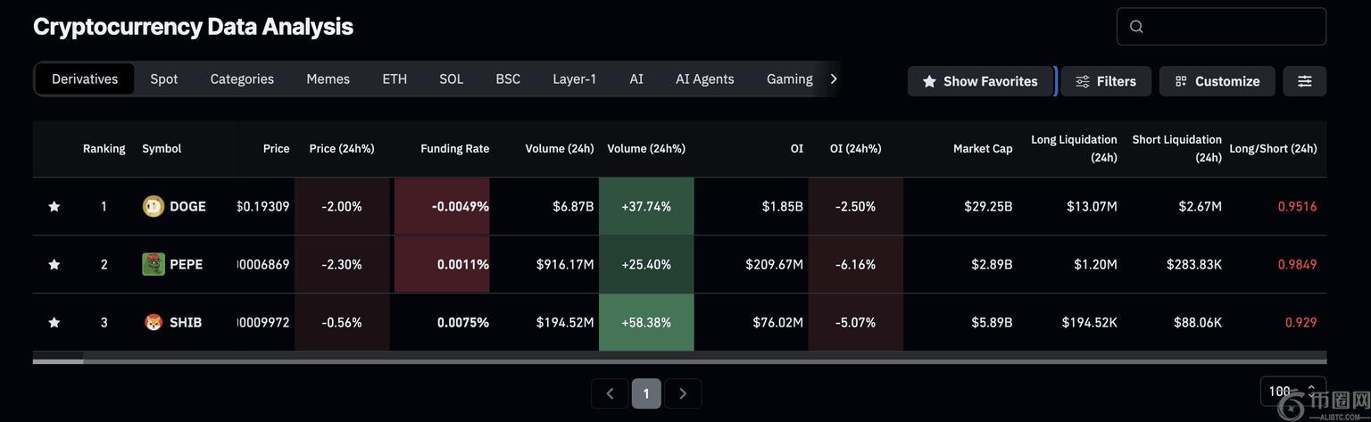 CoinGlass 数据显示,狗狗币 (DOGE)、SHIB 和 PEPE 期货未平仓合约 (OI) 分别下跌 2%、5% 和 6%,分别达到 18.5 亿美元、7602 万美元和 2.0967 亿美元。所有未平仓期货合约的名义价值均视为 OI,其下跌表明通过去杠杆或平仓来降低风险敞口。
