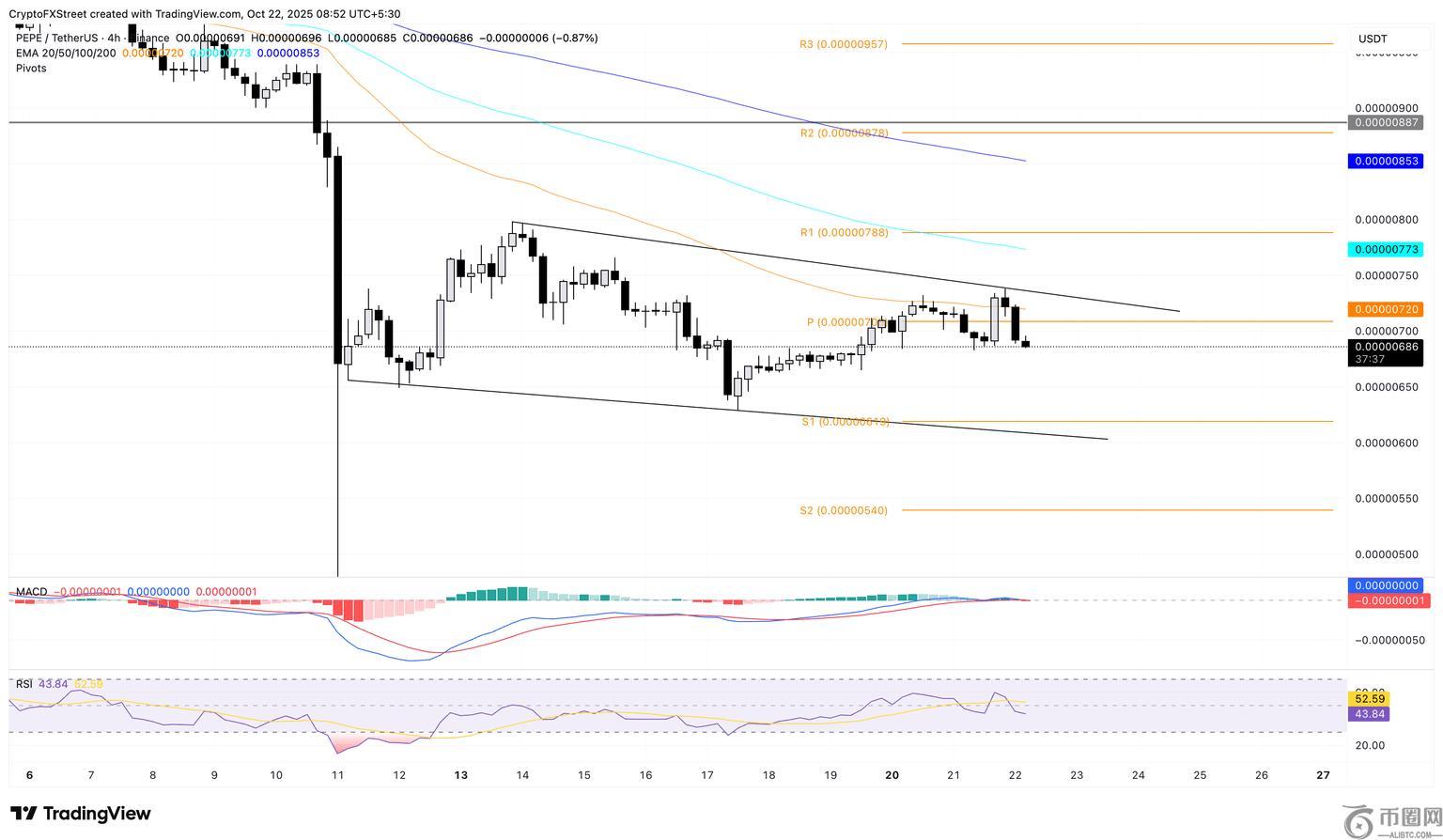 从好的方面来看,如果 PEPE 超过周二的高点 0.00000738 美元,则可能将上升趋势延伸至 R1 枢轴点 0.00000788 美元。