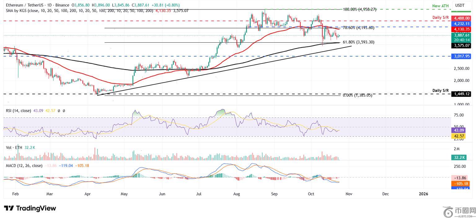 另一方面,如果 ETH 面临回调,则跌幅可能会扩大至 61.8%斐波那契回撤水平为 3,593 美元,与 200 天 EMA 一致。