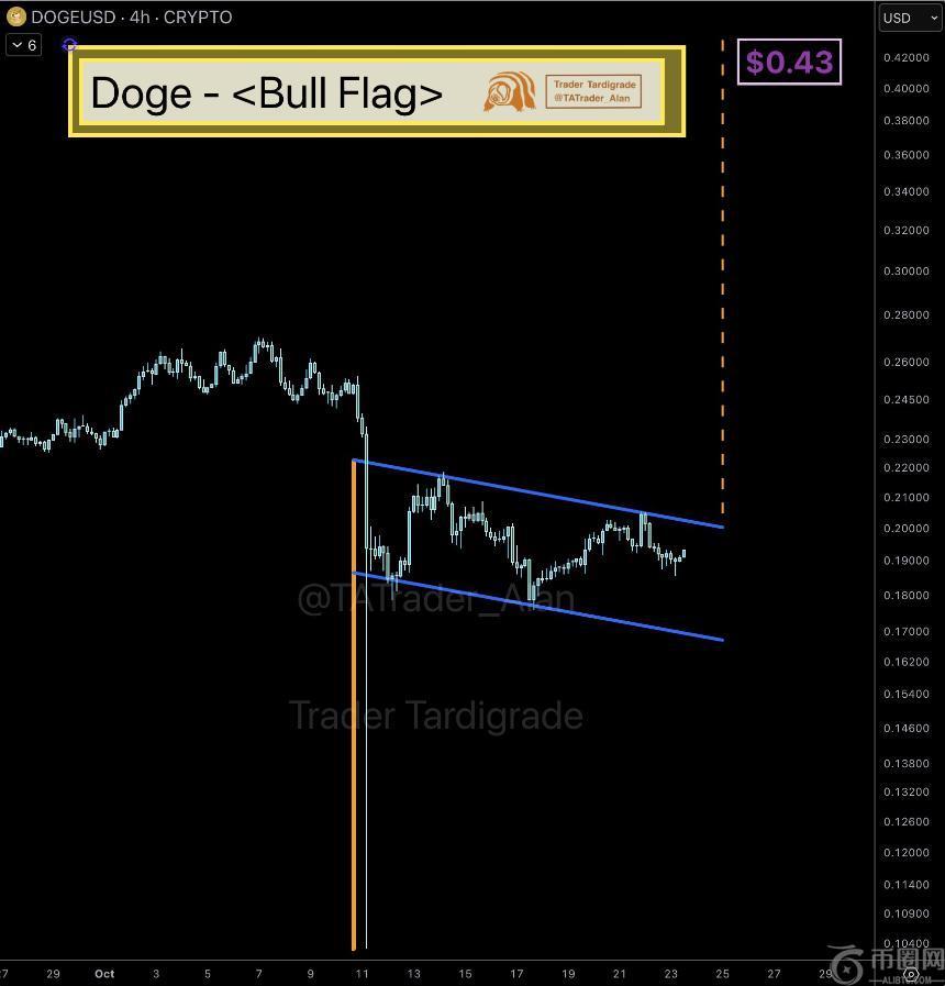 另一位知名分析师Trader Tardigrade也分享了类似的观点。他指出,狗狗币在4小时图上形成了一个牛旗形态,这种技术形态通常预示着价格将向上突破。