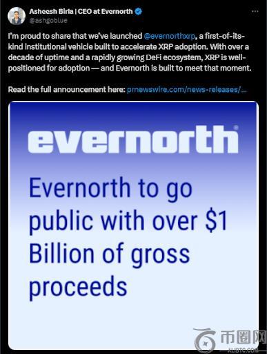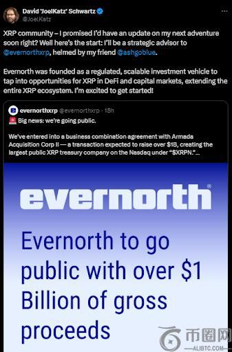 在 X 上的一篇文章中,Schwartz表示,Evernorth 旨在打造一个“受监管的、可扩展的投资工具”,以释放 XRP 在 DeFi 和资本市场中的机会。他补充说,他“很高兴能参与”这个项目。