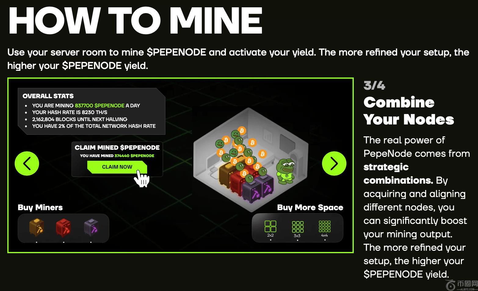 要了解其工作原理,首先必须了解 PepeNode 的实际功能。如前所述,该项目正在开发一款虚拟挖矿游戏,用户无需昂贵的硬件或复杂的设置即可挖取 PEPENODE 代币。