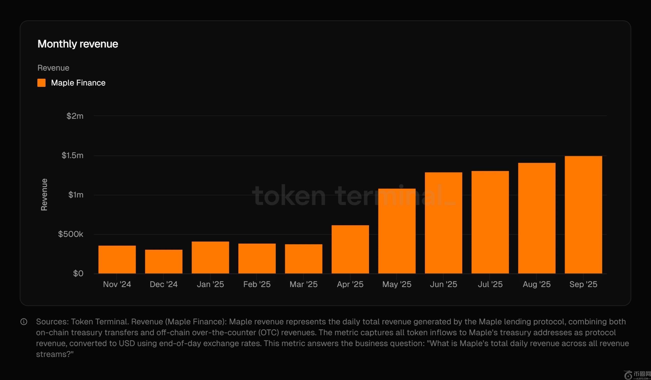 2025 年下半年,Maple 平均每月收入超过 100 万美元,击球9 月份为 150 万美元。