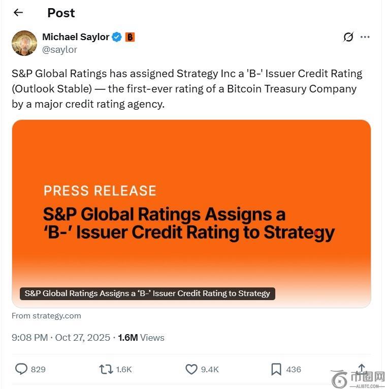 本周,标普对加密货币市场进行评级,为加密货币市场注入了新的活力。Strategy Inc. 的信用评级为 B-迈克尔·塞勒 (Michael Saylor) 的以比特币为主的国库公司。