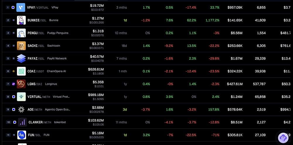 链上数据显示流动性下滑,投资者纷纷转向其他平台。散户投资者疲惫不堪,交易量萎缩,曾经推动 BNB 快速买卖的那股热情已荡然无存。就连 Gecko Terminal 的热门榜单也充斥着 Solana 的热门币种,前十名中甚至没有一个 BNB 的热门币种。