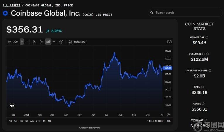 据报道,COIN周五早盘交易价格为356美元,较周四收盘价328美元上涨超过8%。The Block 的价格页面.
