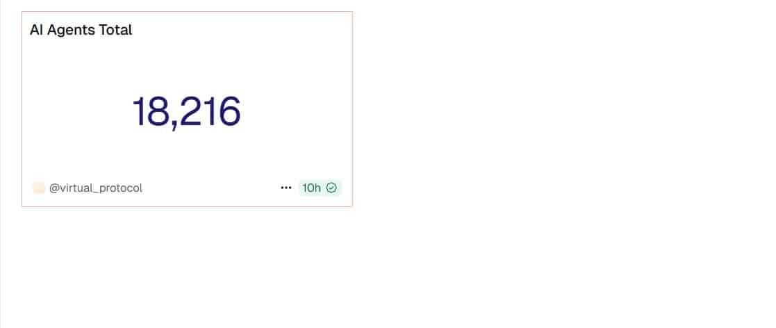 根据 Dune 的数据,AI 代理总数激增至 18,216 个,表明该网络的新功能得到了迅速采用。