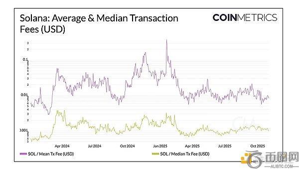 Solana 的高吞吐量设计可实现局部拥堵隔离,无需依赖外部扩容层。2025 年 1 月 TRUMP 代币发行期间,平均手续费升至 0.37 美元,但中位数手续费仍低于 0.003 美元,这表明局部手续费市场可在不推高全网成本的前提下隔离拥堵。