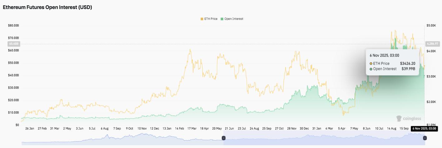 以太坊衍生品市场持续活跃,投机活动日益活跃。11月6日,期货未平仓合约量升至399.9亿美元,创下本季度最高水平之一。