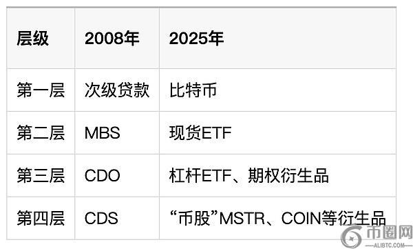 当底层比特币价格波动时,上层的ETF、杠杆产品和币股犹如多米诺骨牌,随时可能坍塌。