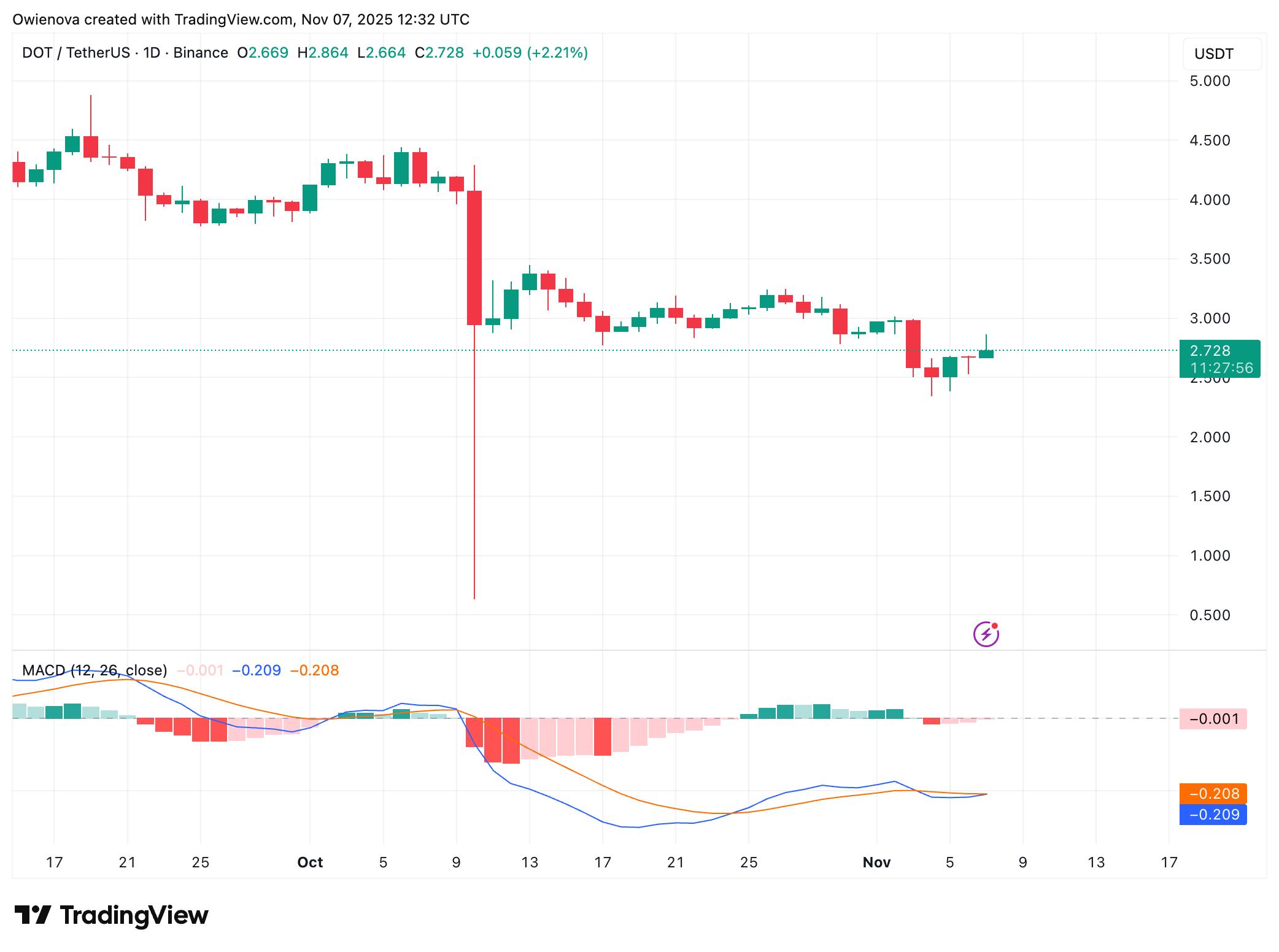 加密工作共享X 指出,Polkadot 的长期走势图基本停滞不前,并受到 3.200 美元和 3.780 美元这两个关键高时间框架 (HTF) 阻力位的制约。分析师提醒交易者,在价格低于这些关键阻力位时,应谨慎对待任何波段(做多)交易策略。