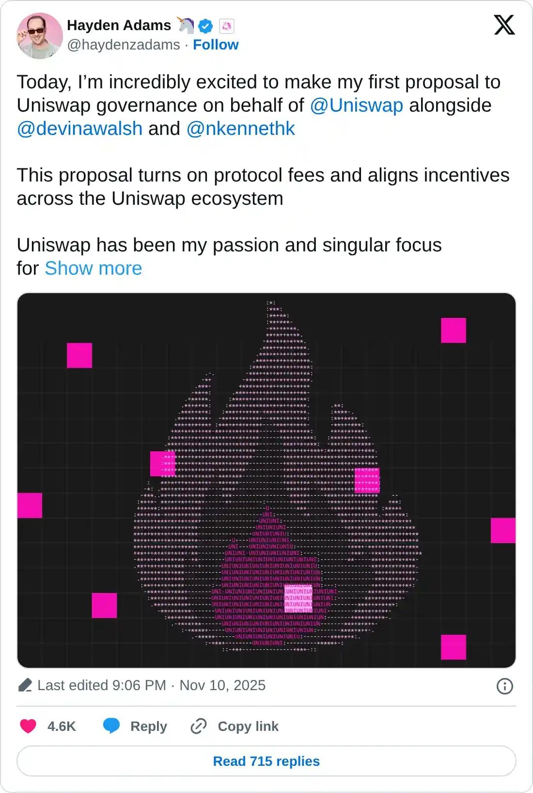 此外,“UNIfication”计划从金库中销毁1亿枚UNI,并将Unichain序列器费用重新分配用于同一用途。除了代币经济模型之外,该计划还引入了协议费用折扣拍卖和聚合器接口,旨在将Uniswap v4转型为能够从外部流动性收取费用的链上聚合器。Adams总结道:“这项提案为Uniswap未来十年的发展奠定了基础。”