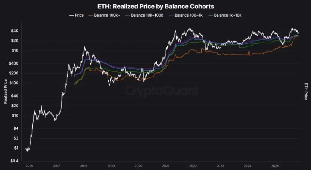 ●大额账户(超10万枚ETH)的实际价格正在快速上涨,这意味着新买家正以更高的价格入场,而小额持有者则在抛售。