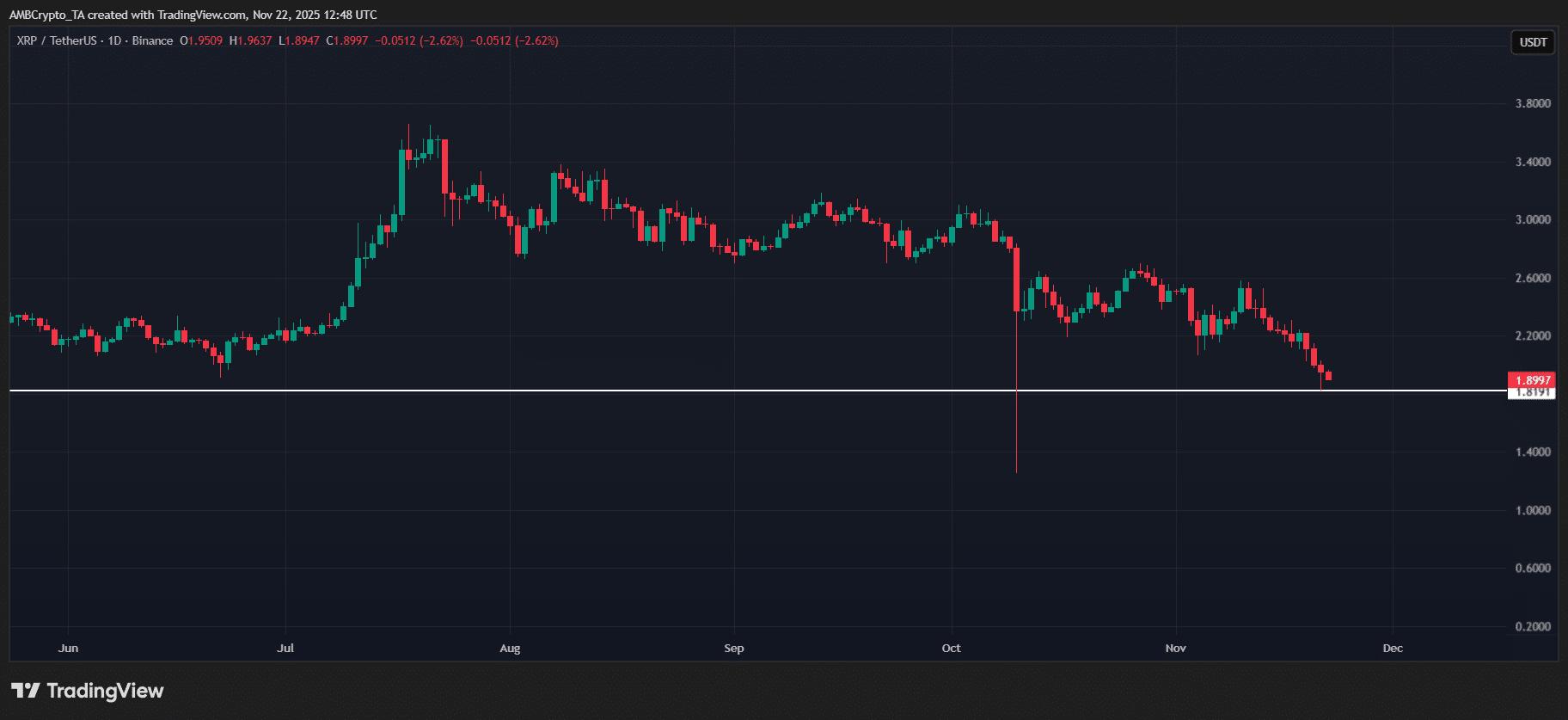 事实证明:Ripple 的链上疲软已经反映在图表上,价格跌破 2 美元。