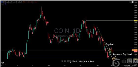 情况只有两种可能:要么 COIN 企稳并尝试反弹,要么继续下跌。无论哪种情况,231 美元这个价位都能告诉你答案。