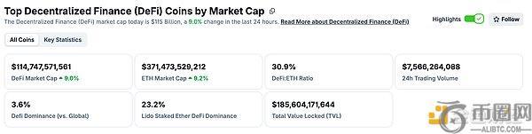 1.DeFi代币总市值:1147.74亿美元