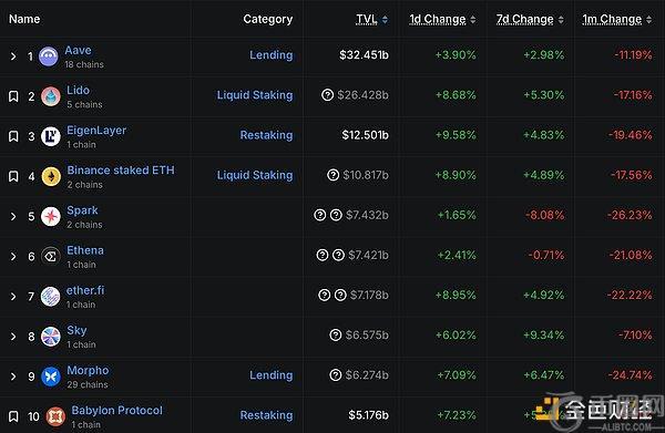 DeFi项目锁定资产前十排名及锁仓量 数据:defillama