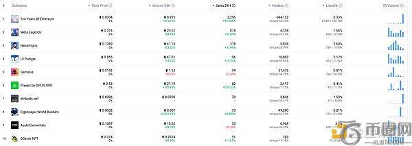 24小时内销售涨幅前十的NFT 数据:NFTGO