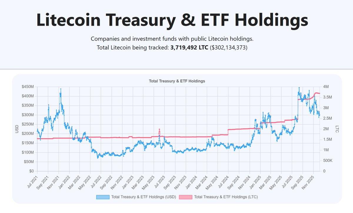 越来越多的上市公司开始接受将莱特币作为国库资产。最新数据显示,这些公司和投资公司合计持有超过370万枚莱特币,较8月份增加了100万枚。此外,Canary Capital推出的莱特币ETF也进一步提升了该产品的市场认可度。