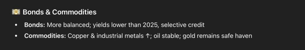 聊天机器人称,在固定收益领域,2026年有望成为更加平衡的一年。收益率可能低于2025年达到的高点水平。债券在多元化投资的讨论中,这一点可能变得更加重要。同样,信贷市场预计将保持稳定,但随着实力较弱的发行人面临再融资风险,投资者可能需要更加谨慎地进行选择。