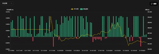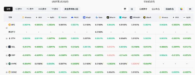 12月18日,当前主流中心化交易所与去中心化交易所的资金费率显示,市场仍维持全面看空。