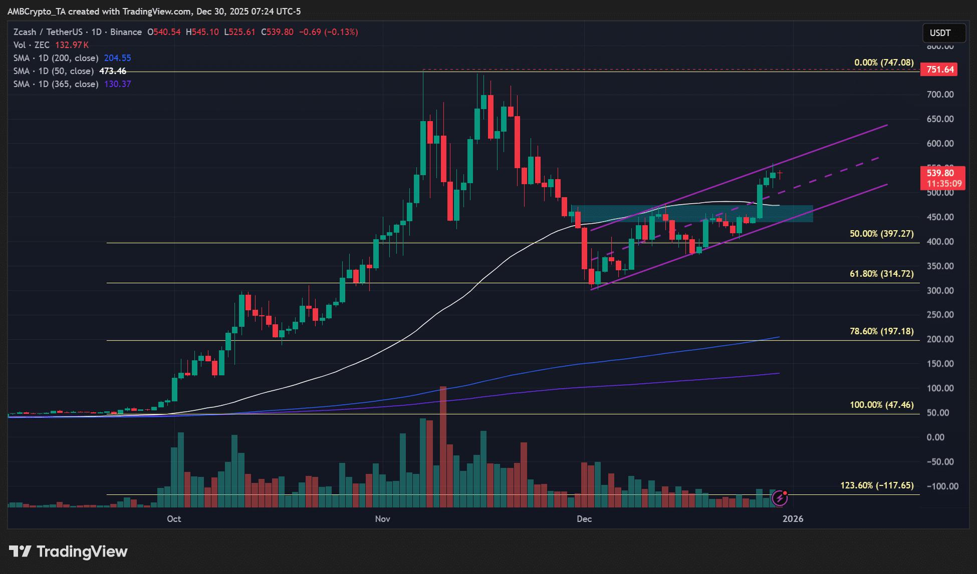 对于大多数专家而言,包括一家知名风险投资公司的合伙人,a16z隐私将成为“加密货币领域最重要的护城河”。如果这一趋势延续到2026年,那么ZEC可能会继续上涨。