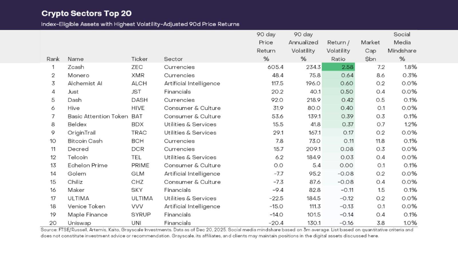 据资产管理公司 Grayscale 称,第四季度表现最佳的 20 种加密货币均为隐私币,其中包括ZEC,门罗币 [XMR],短划线 [DASH]以及其他。
