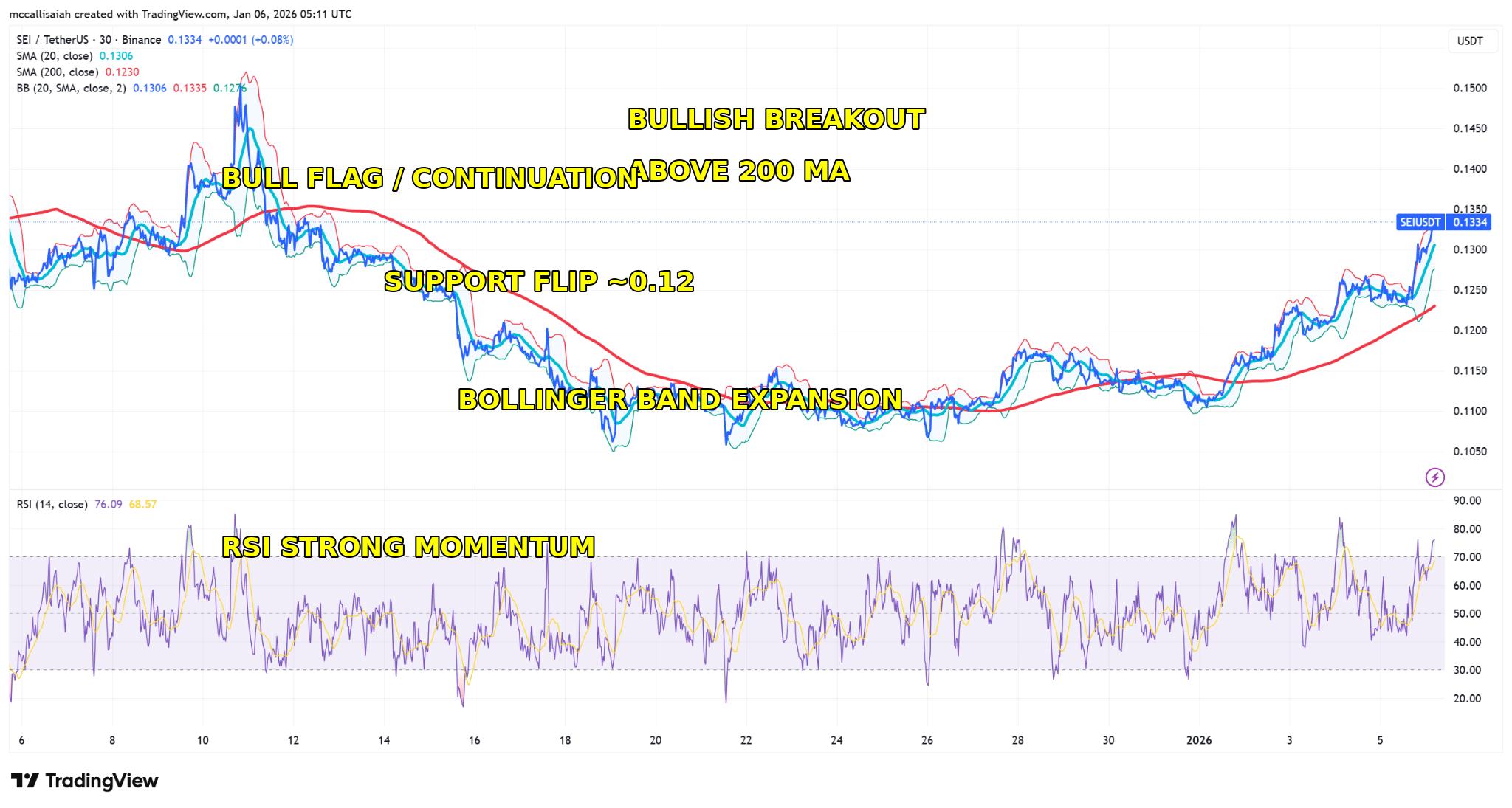 对于SEI加密货币而言,重新站上200日移动均线至关重要。一旦价格突破并守住该均线,下行风险将缩小,而上行空间的不对称性将得到改善。只要SEI能够守住0.12美元至0.122美元的支撑区间,短期内的回调看起来就只是修正性的。