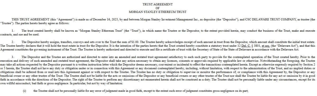 如果获得批准,这将使摩根士丹利成为第一家发行现货以太坊 ETF 的美国大型银行,表明机构对 ETH 的信心进一步增强。
