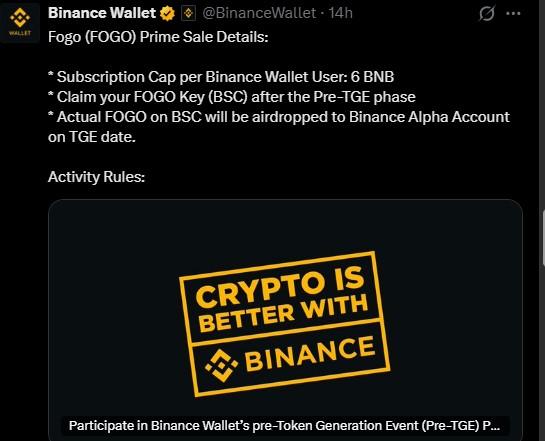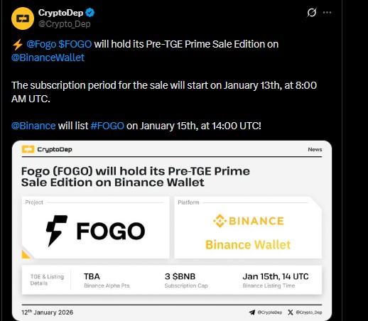 Fogo空投上线日期现已确定,不再是空谈。随着Prime TGE销售于1月13日(今日)正式启动,以及BNB于1月15日上线,该以清晰的计划、强劲的需求和完善的架构正式进入市场。