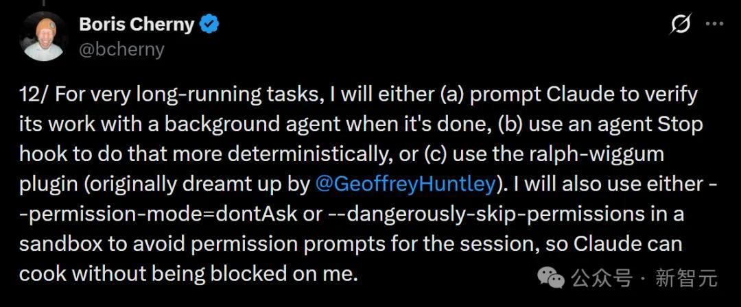 在第12部分,Boris提到,对于运行时间特别长的任务,他通常会采用以下几种方式,其中一种,就是使用ralph-wiggum插件。