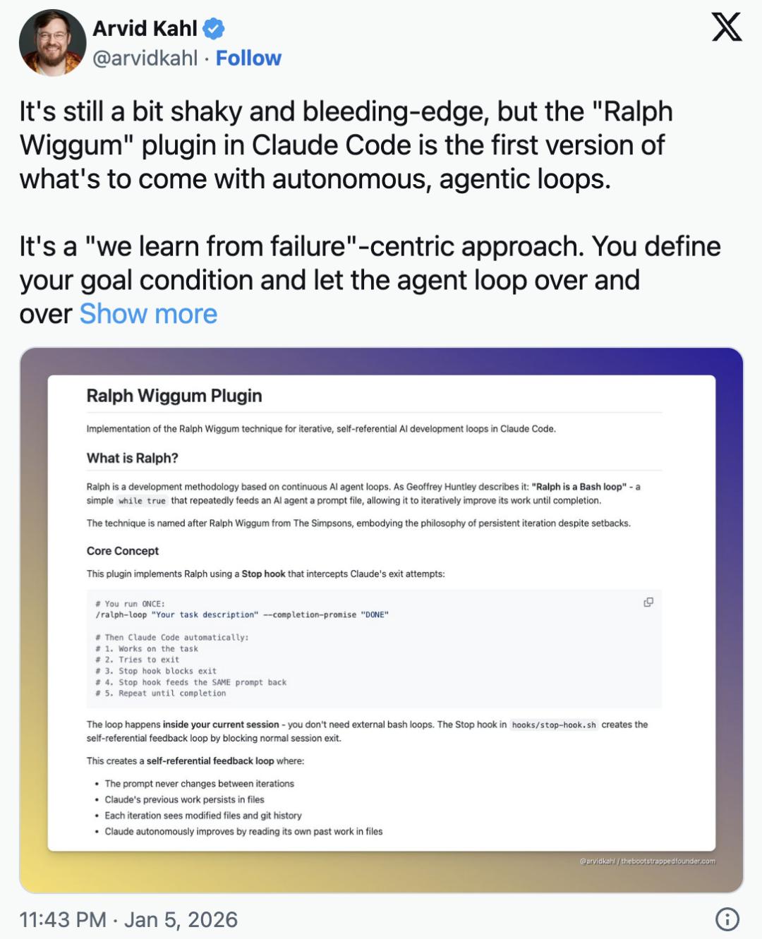 甚至一位工程师预言:2026,将是整个硅谷套壳Ralph Wiggum的一年!