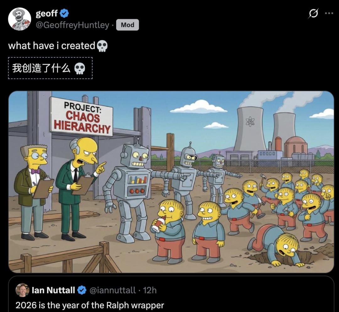 AI工程师、连续创业者Ian Nutall则称,「2026是套壳Ralph Wiggum的一年」。