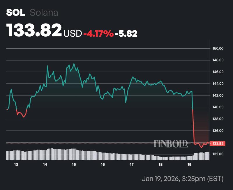 截至发稿时,SOL的交易价格为133美元,过去24小时内下跌了近6%。按周计算,该资产下跌了约4%。