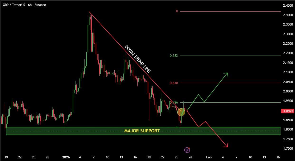 该分析师进一步指出,随着市场波动临近,投资者应该关注两个重要领域。不利的一面是,XRP可能会发现支撑位在 $1.8这在周日的暴跌中起到了重要的缓冲作用。一月25. 自 2025 年末以来,该区域一直对冲着下跌风险。