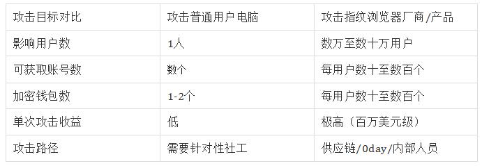 7.2 攻击经济学指纹浏览器之所以成为高价值攻击目标,核心在于其攻击的”杠杆效应”: