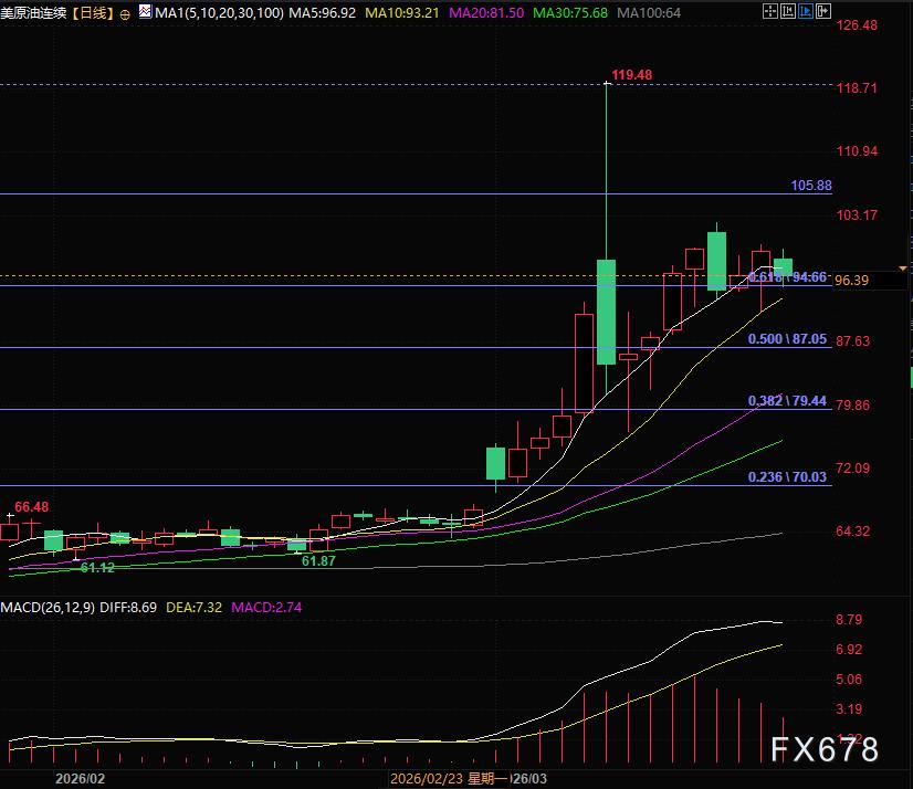 北京时间18:54(UTC+8),现货黄金现报4678美元/盎司,WTI原油期货连续现报96.42美元/桶。