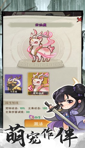 3、采用精致的2D卡通风格,配合中国武侠风格,为玩家带来更愉悦的视觉体验。