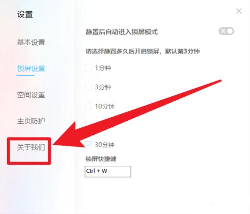 3、在打开的窗口界面中,点击左侧栏中的"关于我们"选项。