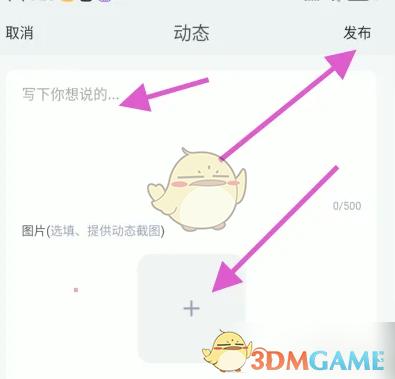 3、进入动态输入信息点击图片点击发布选项即可。