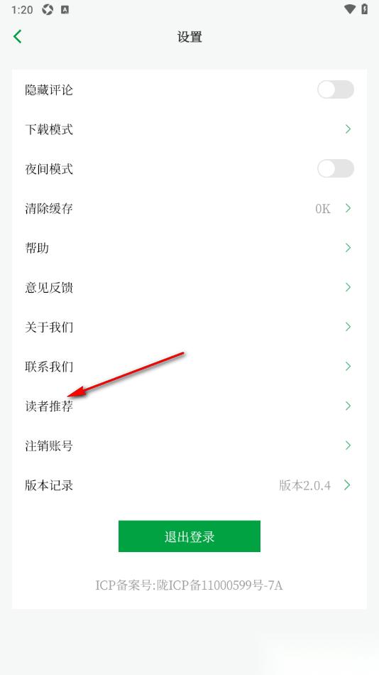 3.在当前打开的设置页面中,选择【读者推荐】功能。