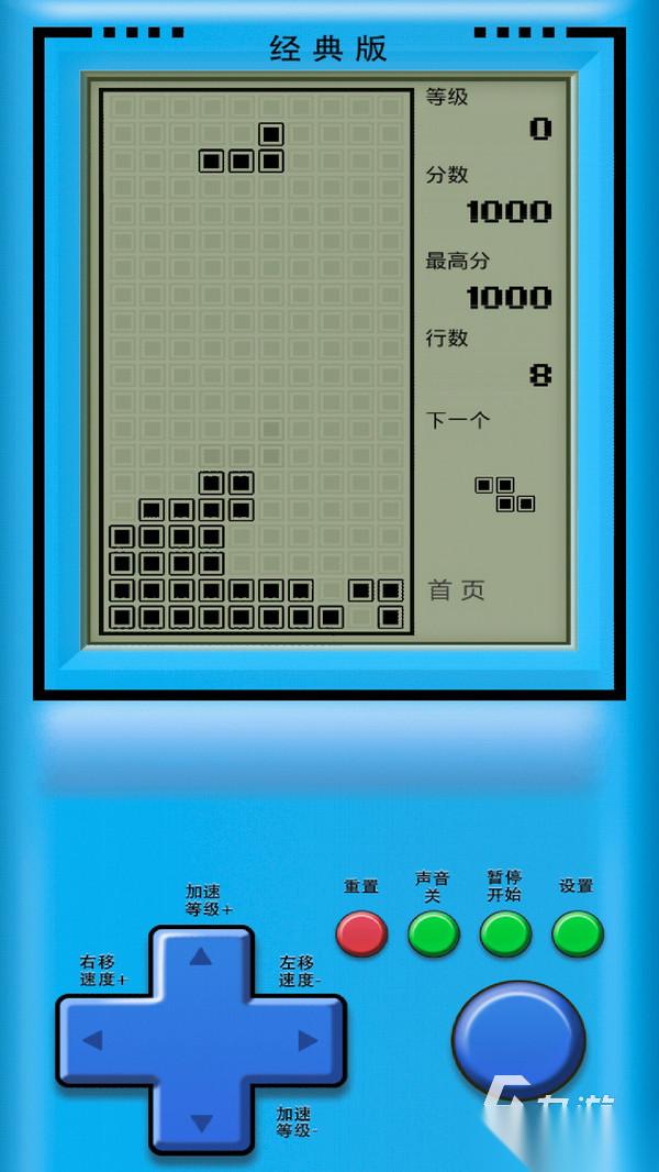 《经典俄罗斯方块》游戏的界面包括按钮设计,完全是根据掌机 Fc一模一样进行打造的,让大家重拾在那种黑白屏幕下,一丝不苟的堆积方块的快乐,另外还整合了众多全新开创的模式,很人性化的把下一个即将出现的方块向大家提示,每个关卡都设定了一个分数标准,而且在操作面板上,支持玩家去调节方块的下落速度。