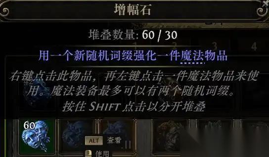 效果是为一件魔法物品(蓝装) 新增一项随机词缀,前期相对容易掉落,如果随机到稀有词缀还是可以用很久。