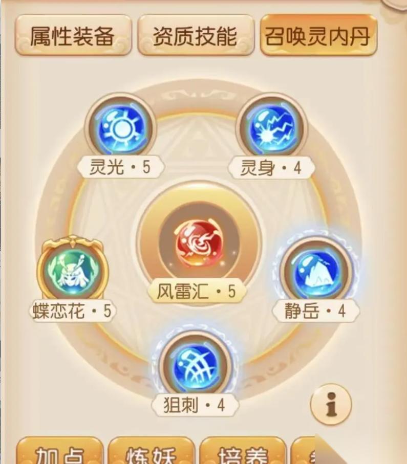 须弥法宠的低级内丹选择直接影响输出效率与生存能力。核心推荐为灵光、灵身、静岳、矫健、擅咒或狙刺,其中灵光与灵身是优先级最高的必选内丹。灵光根据法力点数提升法术伤害,适合全魔加点的须弥宠;灵身则增强法术暴击伤害效果,对依赖暴击的法术输出有显著增益。静岳提供血量和灵力加成,适合需要生存能力的多内丹须弥;矫健则侧重速度与气血,适用于高速须弥。擅咒强化群法伤害,狙刺针对单法场景,需根据技能类型选择。